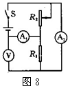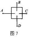13.如图7所示,方框内有两只电阻,不知道是怎样连接,也不知道每只电阻各是多少,测量A、C之间的电阻,测得值是10Ω;用导线将B、D连接起来,再次测量A、C之间的电阻,测量值不可能的是 ( )
