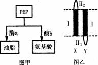 (1)图甲中酶a与酶b结构上的区别是,构成它们的氨基酸的 ▲ 可能不同,并且二者的空间结构也不同。根据图甲中油脂或氨基酸的合成途径,说明基因可以通过 ▲ 控制代谢过程,从而影响生物性状。