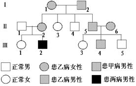 (2)Ⅲ2个体的基因型是 ▲ 。如果Ⅱ6不携带甲病致病基因,则图中Ⅲ2与Ⅲ3结婚生一对同卵双胞胎,两个孩子都得病的概率是 ▲ 。