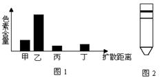 (4)某同学做D实验后,绘制了四种光合色素在滤纸上分离情况(图1所示)。据图分析,溶解度最大的色素是 ▲ (填序号),主要吸收红光的色素是 ▲ 。 另一同学由于研磨绿叶过程中粗心大意,漏加了某些试剂或药品,导致实验结果不理想(图2所示),请指出该同学漏加的试剂或药品 ▲ 。