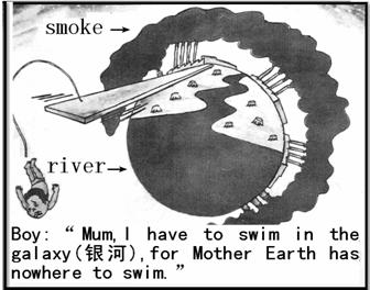 下图描述的是全球环境问题。请仔细观察这幅漫画,用英语写一篇短文,阐明漫画中所反映的问题,并提出解决此问题的方法(至少三点)。