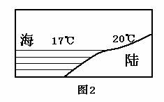 15.右图所示区域的海陆气温有明显的差异,下列叙述正确的是( )