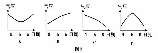 16.读图3,正确反映温州市该时段气压变化的是( )
