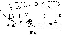 读图6,读下面水循环示意图,完成21~22题。