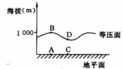 ③ B点和D点的气压相等 ④C点比D点的气压高