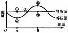 (3)A、B两处受热的是______________,空气作______________(上升或下沉)运动,冷却的是______________,空气作______________(上升或下沉)运动。