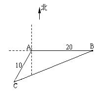 ,相距10海里C处的乙船,试问乙船应朝北偏东多少度的方向沿直线前往B处救援(角度精确到