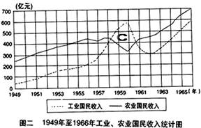 19.仔细观察下面“1949-1966年新中国工业、农业国民收入统计图”,图中C处工业、农业国民收入情况发生的变化的原因是