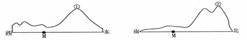 下面为过M点(128°E,48°N)沿经线和纬线作相同长度的地形剖面示意图,读图完成7-8题。