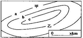 17.若该图为某地降水PH的等值线图,a为5.5,b为5,c为4.5,则下列四地中最可能的是
