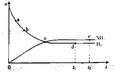 2NH3(g),673K、30MPa下,n(NH3)和n(H2)随时间的变化关系如下图所示,下列说法正确的是
