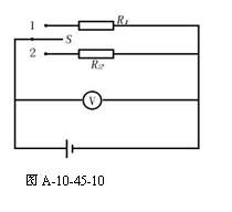 4.如图A-10-45-10所示的电路中,电源内阻不能忽略,R1=10 Ω,R2=8 Ω,当开关S板到位置1时,电压表的读数为2.0 v,当开关S板到位置2时,电压表的读数可能是 ( )