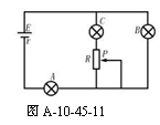 6.如图A-10-45-11所示的电路,A、B、C为三个相同的灯泡,其电阻大于电源内阻,当变阻器的滑动触头P向上移动时 ( )