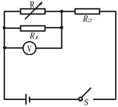 7.在图A-10-45-12所示电路中,电源电动势为12 v,内电阻不能忽略,闭合S后,调整R的阻值,使电压表的示数增大△U=2 V.在这一过程中