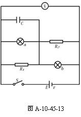 8.如图A-10-45-13所示的电路中,闭合电键S后,灯a和灯b都正常发光,后来由于某种故障使灯b突然变亮,电压表读数增加,由此推断,这故障可能是 ( )