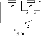 (10分) 如图20所示,电源电动势E=6V,电源内阻不计.定值电阻R1=2.4kΩ、R2=4.8kΩ.