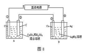 24.(6分)如图8所示,通电5 min后,第③极增重2.16 g,同时在A池中收集到标准状况下的气体224 mL,设A池中原混合液的体积为200 mL,求通电前A池中原混合溶液Cu2+的浓度。