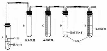(3)对A试管中的浓H2SO4和铜丝进行加热,很快发现C试管中品红溶液褪色,但始终未见D试管中澄清石灰水出现浑浊或沉淀。你的猜想是: