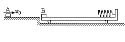 停放着一辆质量M=6.0kg平板车,在车上左端放有一质量mB=4.0kg木块B。车左边紧邻一个与平板车等高的光滑水平面,现有另一质量 mA= 2.0kg的木块A,从左侧光滑水平面上以v0=3.0m/s向右运动,然后与B发生碰撞,设木块A、B碰撞时间很短且为弹性正碰。碰后木块B开始在平板车上滑行,并与固定在平板车上的水平轻质弹簧作用后与弹簧分离,已知木块B把弹簧压缩到最短时距离平板车左侧的距离为L=0.20m,重力加速度为g=10m/s2,木块B与平板车之间的动摩擦因数为μ=0.50。(结果保留两位有效数字)求: