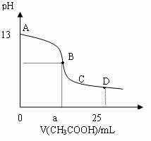25℃时,在25mL0.1mol/L的氢氧化钠溶液中,逐滴加入0.2mol/LCH3COOH,溶液的pH的变化曲线如图所示,下列分析的结论正确的是