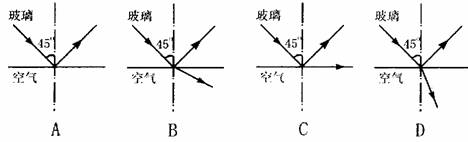 解析:∵玻璃的折射率为n=1.5,∴全反射临界角为c,从图可知入射角a=45º>c,.故发生全反射,即A图正确。