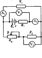 ;由A2和V1的数据可求出电阻R3;由V2和A1、A2的数据可求出R2。