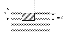 (2) 因容器水面面积为2a2,只是木块底面积的2倍,不可忽略因木块压入水中所引起的水深变化,木块刚好完全没入水中时,右图中原来处于下方划斜线区域的水被排开到上方划斜线区域。这部分水的质量为