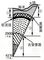 读“地球内部结构示意图”,回答9-10题。