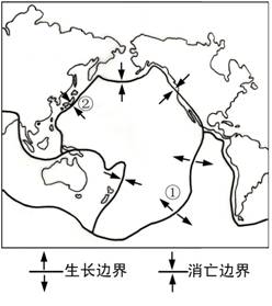 13.图中②处附近因太平洋板块的持续移动而形成 ① 岛弧 ② 巨大山脉 ③海沟