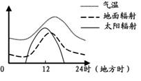 下图是某地一日内太阳辐射、地面辐射和气温变化示意图。回答16-17题。