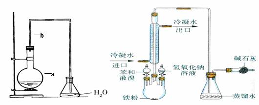 (5)反应完毕后,将烧瓶a中的液体倒入盛有冷水的烧杯里,可以观察到烧杯里有褐色不溶于水的液体生成,这是因为溴溶于溴苯的缘故。纯净的溴苯为 色液体,它的密度比水 (填大或小)。向烧杯中加入氢氧化钠溶液后,振荡、静置再用