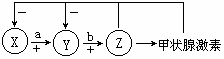 A.图中X与Y分别是下丘脑和垂体 B.图中a与b分别是促甲状腺激素释放激素和促甲状腺激素 C.甲状腺的活动只受垂体分泌的激素调节 D.血液中的甲状腺激素含量起着反馈调节的作用