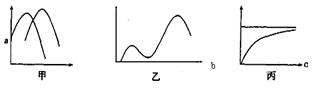 28.下图所示甲、乙、丙中的曲线分别表示一种生命现象,坐标a、b、c表示生命活动中的一种变量。生命现象:①生长素的浓度对根和茎生长速度的影响;②恒温动物、变温动物体温变化与环境温度的关系;③二次抗原免疫与血清中抗体浓度变化。变量:I.时间;II.温度;III.生长速率。下列关于甲、乙、丙所表示的生命现象及对应的a、b、c正确的一组为 ( )