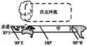 (3)甲海区盛行 风;图中90°W附近表层海水随风离岸而去,深层海水出现 运动。形成 补偿流;沿岸 资源丰富。(3分)