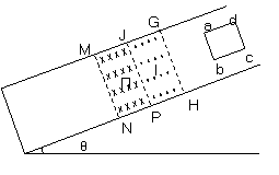 8、在如图所示的倾角为θ的光滑斜面上,存在着两个磁感应强度大小为B的匀强磁场,区域I的磁场方向垂直斜面向上,区域Ⅱ的磁场方向垂直斜面向下,磁场的宽度均为L,一个质量为m、电阻为R、边长也为L的正方形导线框,由静止开始沿斜面下滑,当ab边刚越过GH进入磁场Ⅰ区时,恰好以速