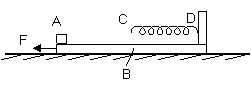 13、如图所示,质量M=4kg的滑板B静止放在光滑水平面上,滑板右端固定一根轻质弹簧,弹簧的自由端C到滑板左端的距离L=0.5m,这段滑板与木块A之间的动摩擦因数μ=0.2,而弹簧自由端C到弹簧固定端D所对应的滑板上表面光滑。可视为质点的小木块A质量m=1kg,原来静止于滑板的左端,当滑板B受水平向左恒力F=14N,作用时间t后撤去F,这时木块A恰好到达弹簧自由端C处,假设A、B间的最大静摩擦力和滑动摩擦力相等,g取10m/s2,求:
