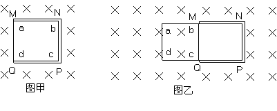 14、如图甲所示,空间存在着一个范围足够大的竖直向下的匀强磁场区域,磁感应强度大小为B,边长为L的正方形金属框abcd(以下简称方框)放在光滑的水平地面上,其外侧套着一个与方框边长相同的U型金属框架MNPQ(下简称U型框),U型框与方框之间接触良好且无摩擦。两个金属框每条边的质量均为m,每条边的电阻均为r。