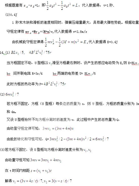 (2)木块A压缩弹簧过程中弹簧的最大弹性势能。