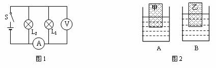 8.在两个完全相同的容器A和B 中分别装有等质量的水和酒精(ρ水>ρ酒精),现将两个完全相同的长方体木块甲和乙分别放到两种液体中,如图2所示,则此时甲和乙长方体木块下表面所受的压强P甲、P乙,以及A和B 两容器底部所受的压力FA、FB的关系是 ( )