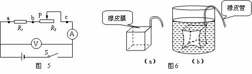 15.在如图5所示的电路中,电源电压不变,闭合电键S,当滑动变阻器的滑片P向右移动时,电压表V和电流表A的示数的比值将__(19)__。(选填“变大”、“变小”、“不变”)若将电压表V1与电路中___(20)___两点相连接(选填“ab”、“bc”、“ac”),可以实现当滑动变阻器滑片P向左移动时,电压表V和电压表V1的示数的差变大。