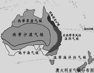 (2)澳大利亚南回归线以南的草原气候:此后处是地中海气候向热带沙漠气候的过渡,故雨季在冬半年。