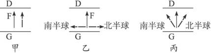 表示风向,D表示低压,G表示高压,F表示水平气压梯度力):