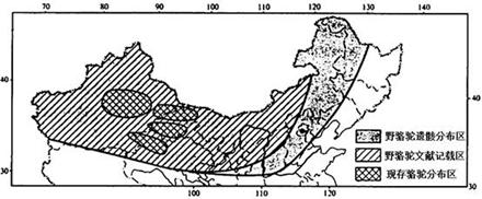 通过对我国野骆驼遗骸和文献记栽的研究,得到其分布变迁图,完成23-25题。