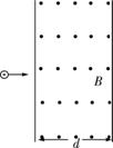 如图所示,质量为m带电量为q的粒子以速度v0垂直地射入宽度为d的匀强磁场,磁场的磁感应强度为B,为使粒子能穿过磁场,则v0至少等于 ( )