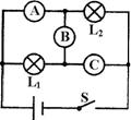 在如图所示的电路中,A、B、C分别表示理想电流表或电压表,它们的示数以安或伏为单位。当电键S闭合后,A、B、C三表示数分别为1、2、3时,灯L1、L2均正好均正常发光。已知灯L1、L2的额定功率为3∶1,则可判断( )