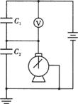 在如图所示的静电实验电路中,已知电容器的电容C1=C2=C,电源的电动势为E,内阻为r,电压表的内阻为10kΩ,当电路达到稳定状态后,则( )