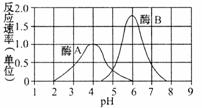 右图曲线显示在一定pH范围内,酶A和酶B所催化的反应速率。下列选项错误的是