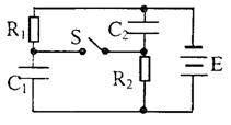 在右图所示的电路中,已知C1=C2,电阻R1>R2,电源电动势为E,内阻不计,当开关S由断开到接通时,下列说法正确的是( )
