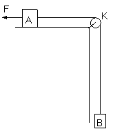 16、(6分)如图所示,在水平桌面的边角处有一轻质光滑的定滑轮K,一条不可伸长的轻绳绕过K分别与物块A、B相连,A、B的质量分别为mA、mB。开始时系统处于静止状态。现用一水平恒力F拉物块A,使物块B上升。已知当B上升距离为h时,B的速度为v。求此过程中物块A克服摩擦力所做的功。重力加速度为g。