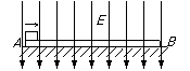 (8分)矩形绝缘板固定在水平面上,另有一质量为m,带电量为q的小物块沿板的上表面以某一初速度从左端A水平向右滑上该板,整个装置处于竖直向下,足够大的匀强电场中,小物块沿板运动至右端B恰好停在板上.若强场大小不变而方向反向,当小物块仍由A端以相同的初速度滑上板面,则小物块运动到距A端的距离为板长2/3处时,就相对于板静止了.求:⑴小物块带何种电荷?⑵匀强电场场强的大小E.
